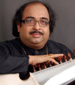 | 9.30am - 12noon - Symposium - lecture/demonstration - "Thumri ki Kahani" A historical and philosophical journey of the evolution of the light classical vocal genre of "Thumri". Presented by Pt. Vijay Kichlu through lecture and old recordings of great masters of the past and their contributions to Thumri singing. Interspersed were live recitals of existing Purab ang and Punjab ang of Thumris by accomplished vocalists Sanjukta Biswas and Shantanu Bhattacharyya. Accompanied by Durba Bhattacharyya on harmonium. Thumri Ki Kahani is the story of the romantic evolution of Thumri, comparatively a recent style of singing which took the world of music by storm about 175 years ago. The Lecture-demonstration went through the journey Thumri has undertaken and also about it's philosophy and what Thumri is all about. Valuable recorded music was played giving the precious compositions of some of the greatest earliest composers of Thumri like Lalanpiya, Sanadpiya, Bindadin Maharaj, and Kunwar Shyam and some of the unforgettable and rare recordings of stalwarts like Maijuddin Khan, Fiyaz Khan, Abdul Karim Khan, Begum Akhtar, Siddheshwari Devi, Bade Ghulam Ali Khan, and Barkat Ali Khan. There was also live demonstration of Pural and Punjab ang of Thumries from two of the finest young exponents of Thumri - the first complete work on Thumri and undoubtedly a rare and unforgettable experience for all music lovers. 1.45pm - Opening Remarks and Lamp Lighting 2pm - 3.45pm - Debashish Bhattacharya (Dev Veena or glide guitar) accompanied by Arup Chatterjee (Tabla) 4pm - 5.15pm - Sanjukta Biswas (Hindustani Vocal) accompanied by Samar Saha (Tabla), Durba Bhattacharyya [Harmonium] 6pm - 8pm - Tejendra Majumdar (Sarod) and Kushal Das (Sitar) - Juglabandi (duet) accompanied by Subhankar Banerjee (Tabla) 8.15pm - 10.15pm - Aruna Sairam - (Caranatic Vocal) accompanied by H.N. Bhaskar (Violin) and Patri Satish Kumar (Mridangam) 10.30pm - 12.30am - Rajan and Sajan Mishra (Hindustani Vocal) accompanied by Samar Saha (Tabla), Durba Bhattacharyya [Harmonium]) Bios Honorary Coordinator , Pandit Vijay Kichlu ![]() Pandit Vijay Kichlu, a Master of Arts from the University of Allahbad, has a unique combination of executive ability and artistry. As the mastermind and executive director of the revolutionary institution, Sangeet Research Academy, Pandit Vijay Kichlu is totally committed to Indian classical music, its propagation and preservation. Although he did not take music as a profession, Pandit Vijay Kichlu has been recognized as a leading vocalist of the Agra gharana, having been trained under the tutelage of the Dagar Brothers and later Ustad Latafat Hussain Khan. An erudite musician and a very fluent speaker, Pandit Vijay Kichlu holds fame in musicological circles all over the world. His lecture-demonstrations and compact workshops are pleasantly enlightening for the listener and participant. He has been granted Honorary Citizenship of the State of Maryland and the City of Baltimore in appreciation of his efforts in promoting Indian Classical music in the USA. ARTISTES Subhankar Banerjee ![]() Subhankar Banerjee is one of the leading soloist as wells as an accompanist tabla player of India. At the age of five, the musical wonder kid was placed under the tutelage of Shri Swapan Shiva, a celebrated artiste and teacher of Farukhabad Tabla Gharana. Over the years, he has dedicated himself to grooming his versatility by learning styles specific to diverse gharanas from different maestros. Training in vocal music from his childhood has made him a competent vocalist as well. In addition to being a reputed soloist, Subhankar is an accompanist of choice for most prominent celebrities of our country such as Pandit Ravi Shankar, Ustad Amjad Ali Khan, Pandit Hariprasad Chaurasia Pandit Shiv Kumar Sharma, Pandit L. Subramanium, Dr.M.Balamuralikrishnan, Pandit Jasraj, Pandit M.S.Gopalkrishnan, Pandit Ajoy Chakraborty, Pandit V.G.Jog, Ustad Imrat Hussian Khan, and many others. He has been a proud recipient of several awards from dignitaries like Satyajit Ray, Pandit Ravi Shankar, and the President of India in 1987. Debashish Bhattacharya ![]() Debashish Bhattacharya, the revolutionary musician, composer, innovator, guru, is a musical genius whose dynamism in artistry and creativity has attracted devotees of music from across the globe. As a powerful slide guitarist, he has set a new trend among fellow musicians of "Universal Human Music" which transcends the confines of origin or genre. His ingenious finger style technique as well as his unique playing style combining thumb and index finger produces the finest "bole" variety, fastest "Taanas", and strongest "Jhala", which were technically impossible on a slide guitar earlier. A dedicated Guru and pathfinder, Debashish has written a syllabus on Indian Classical Guitar, the first of its kind, which includes technical terminologies and abbreviations. Blessed by the genes of a family who had produced generations of musicians, Debashish carries music in his veins. His debut at the age of four was broadcast by All India Radio, Kolkata, and was blessed by the late Ustad Karamatullah Khan of Farukhabad gharana who accompanied him on the Tabla. He is perhaps the only phenomenon in the history of the world music and Indian classical music who has created a Trinity of Slide Guitars. Christened as CHATURANGUI, GANDHARVI, and ANANDI, these, according to Bob Brozman are "the new arms and ammunitions to fight against ignorance". Debashish has won several competitions and been the recipient of numerous prestigious awards for his innovation and excellence in music. debashishbhattacharya.com Durba Bhattacharyya ![]() Durba Bhattacharya possesses an unmatched talent of singing soulfully and tunefully with an impeccable sense of rhythm invoking the Divine presence. She is also a Harmonium artist of extraordinary merit and has accompanied great vocalists in major concerts across the world. Durba started he
